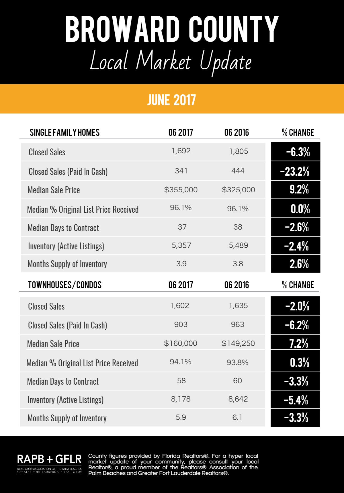 Market Stats for June 2017 – Broward County – Single Family Homes and Condominiums